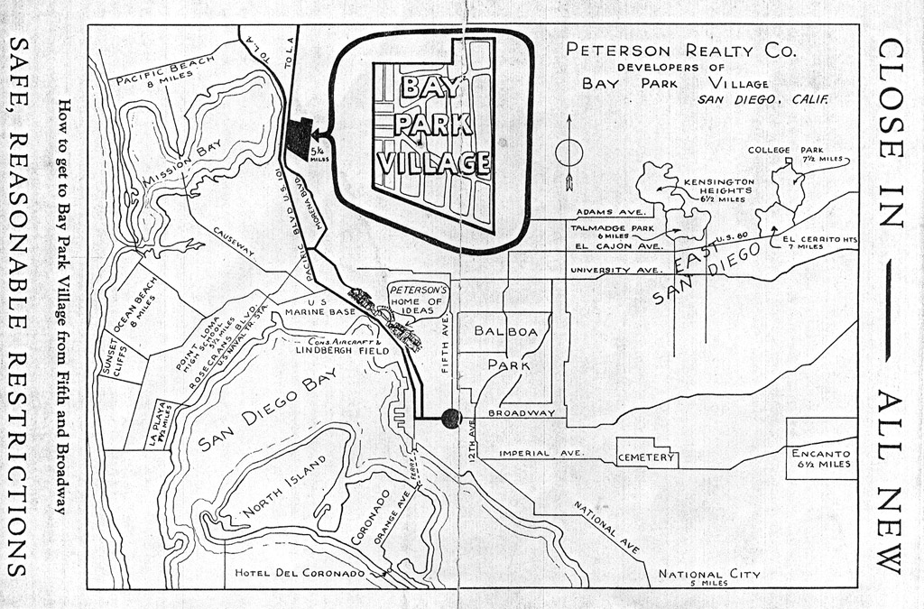 Map of San Diego showing directions to Bay Park Village. |