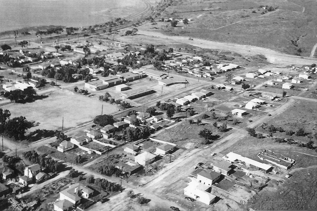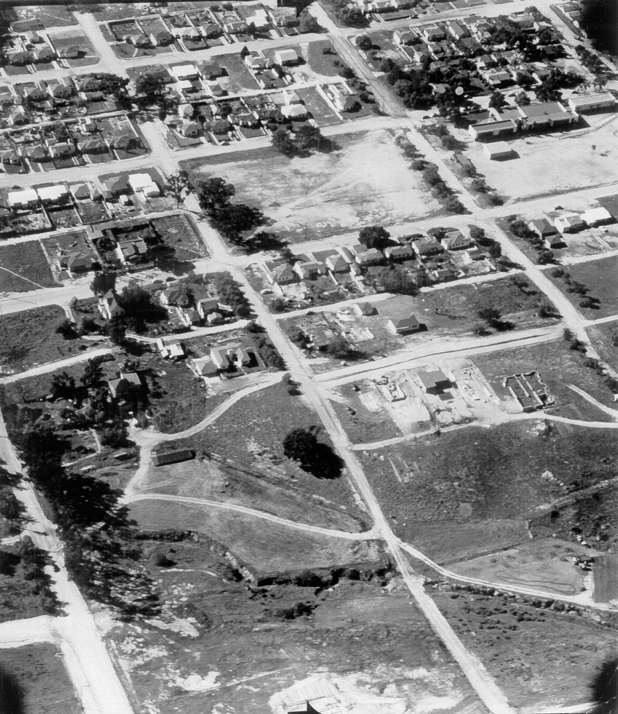 Bay Park School from the air. Notice that Denver St. and the other streets are unpaved. |