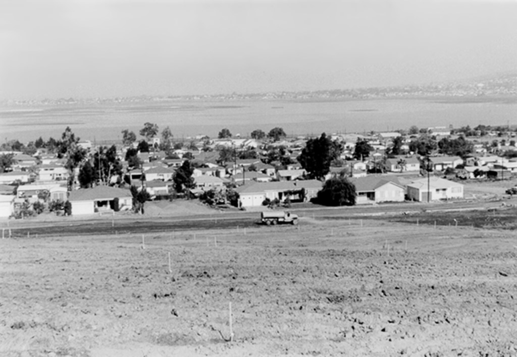Looking Northwest towards future Clairemont Dr. with Bay Park Elementary in the center. |