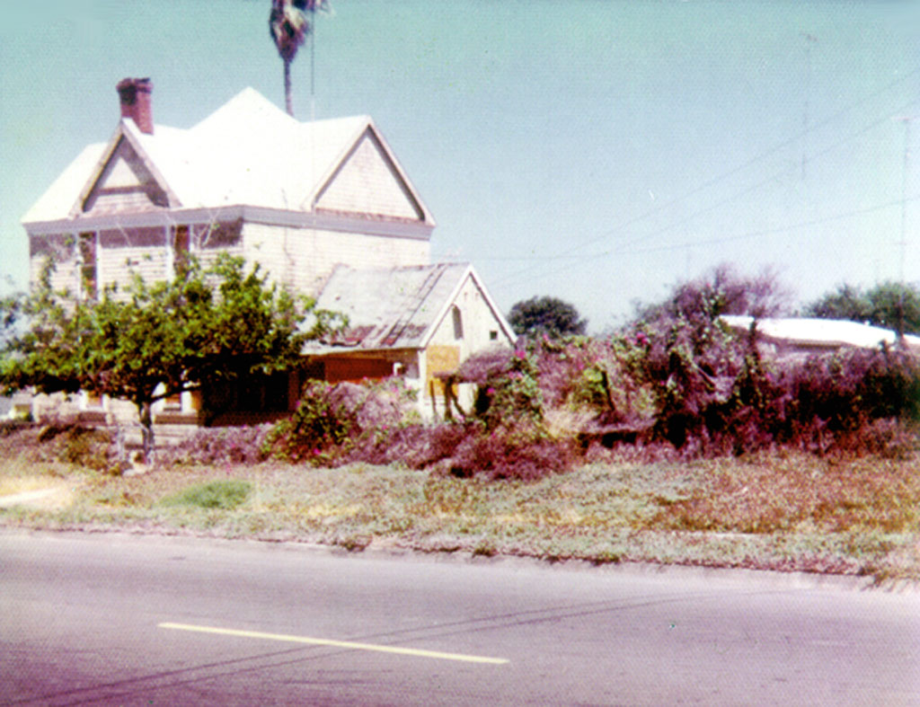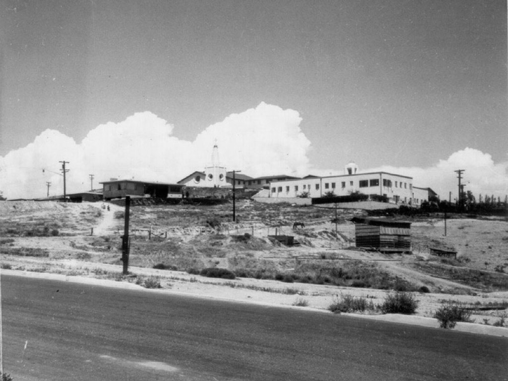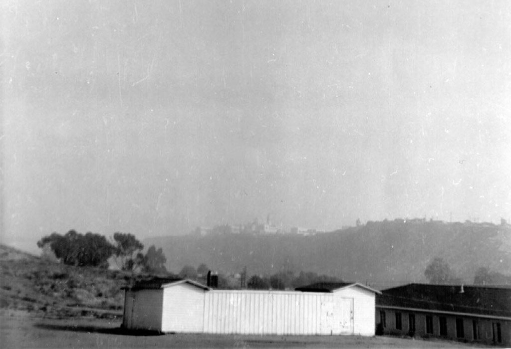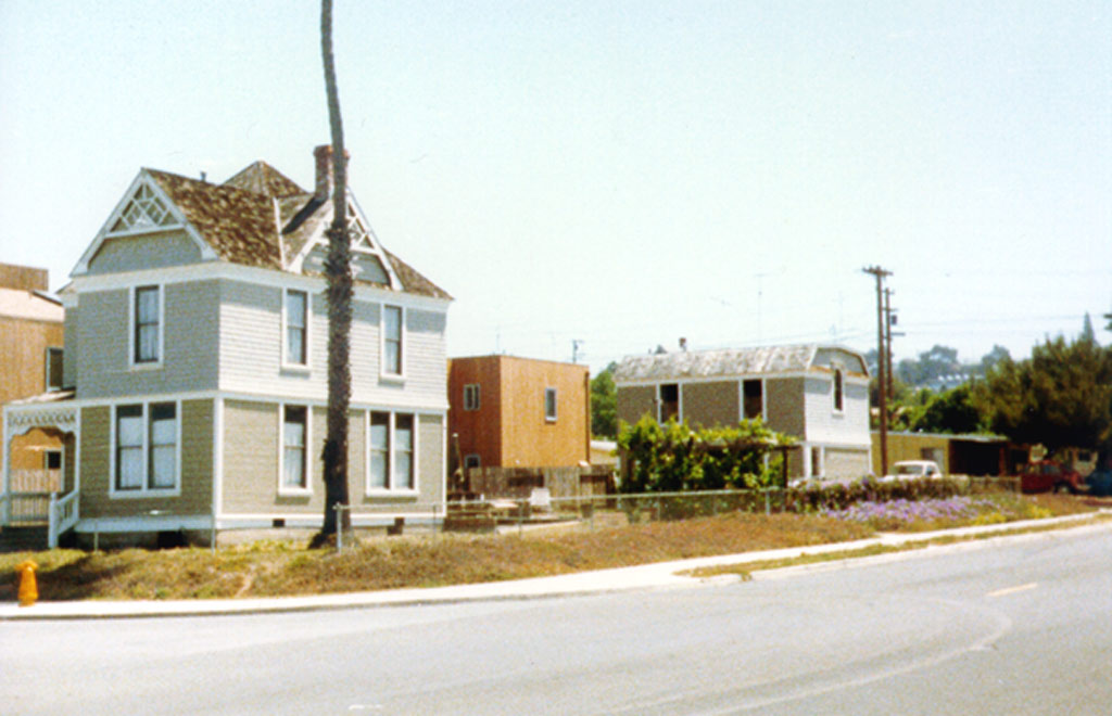 Galveston Street looking towards USD with the Baptist Church and horse corral in the foreground. |